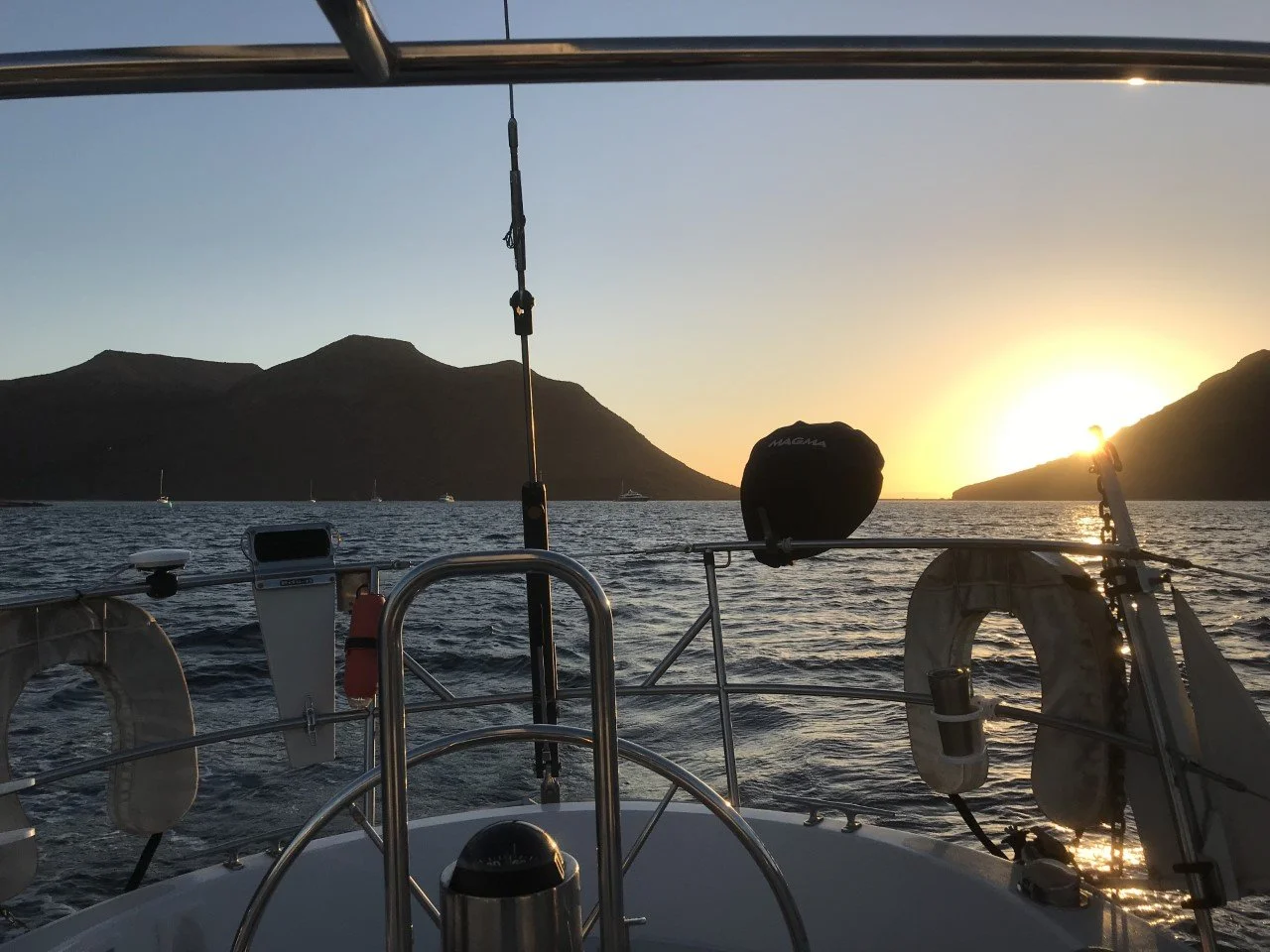 We weighed anchor just after 0600 (according to the later clocks) and headed out. We sailed up to San Francisco and got into a beautiful anchorage, but out in the middle as there were already quite a few boats there. We were anchored by 1100 in 25’ of water.